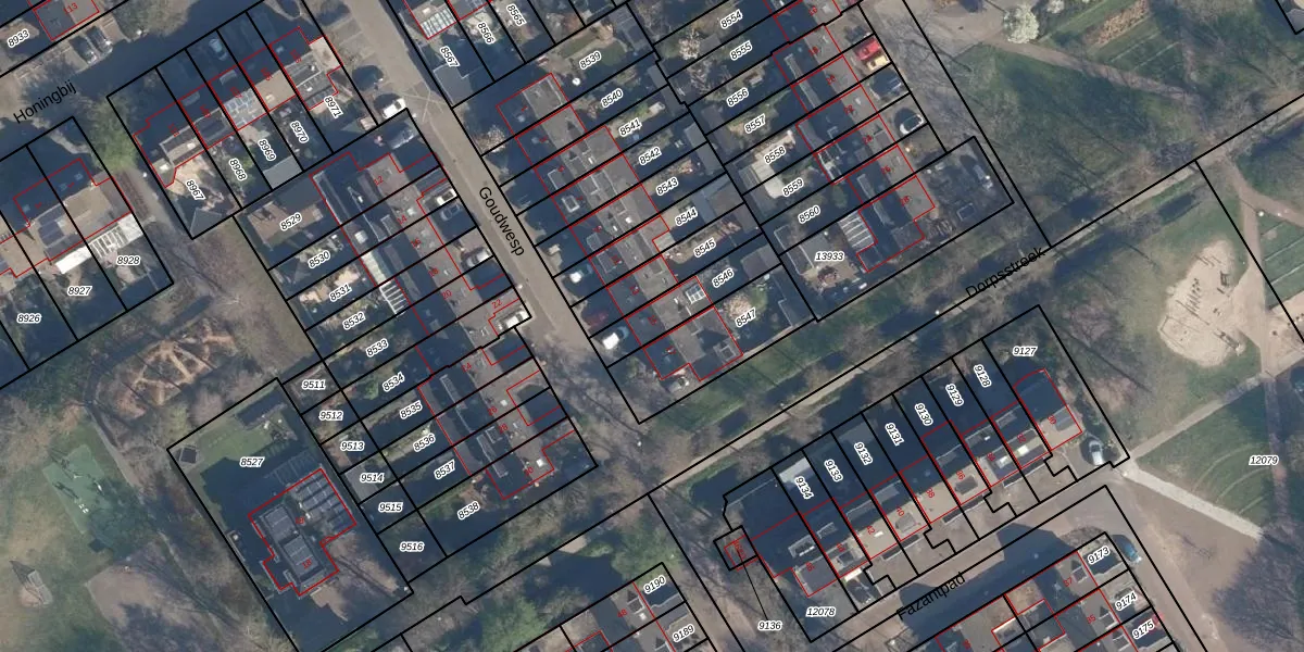 Gebruik de zoekbalk of klik op een perceel voor informatie over de adressen binnen dit perceel.