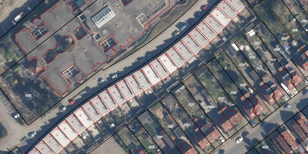 Graanakker 36 is gelegen op kadastraal perceel SOE00K5606. Deze kadastrale aanduiding is uniek en wordt gebruikt door het Kadaster om eigendomsrechten en andere zakelijke rechten vast te leggen. Het perceel maakt onderdeel uit van de kadastrale gemeente Soest.