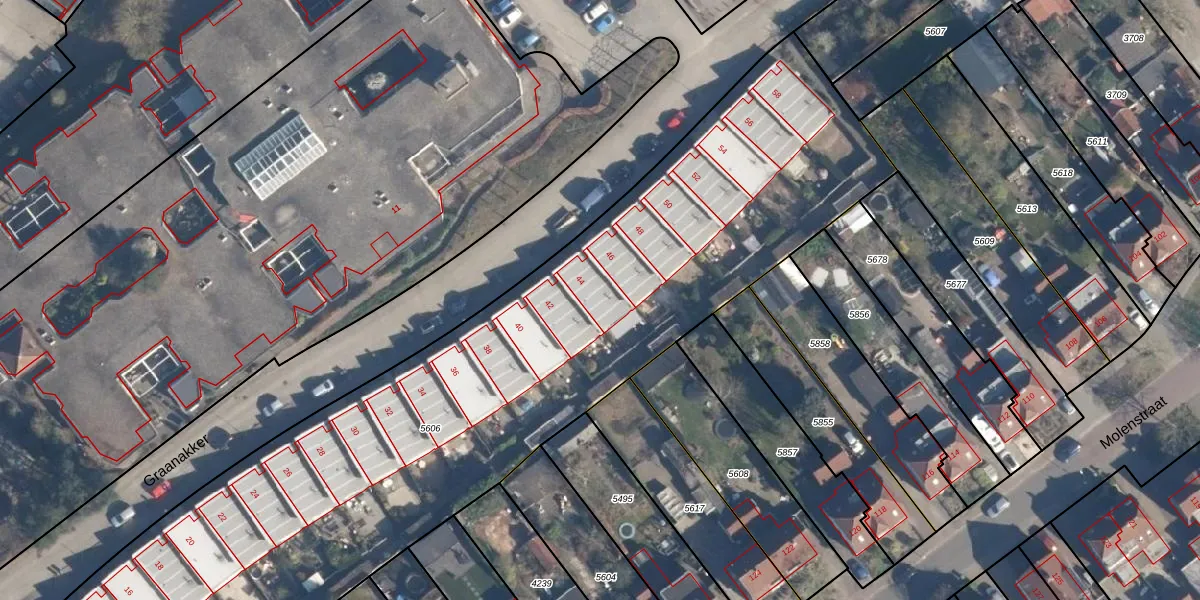 Graanakker 44 is gelegen op kadastraal perceel SOE00K5606. Deze kadastrale aanduiding is uniek en wordt gebruikt door het Kadaster om eigendomsrechten en andere zakelijke rechten vast te leggen. Het perceel maakt onderdeel uit van de kadastrale gemeente Soest.