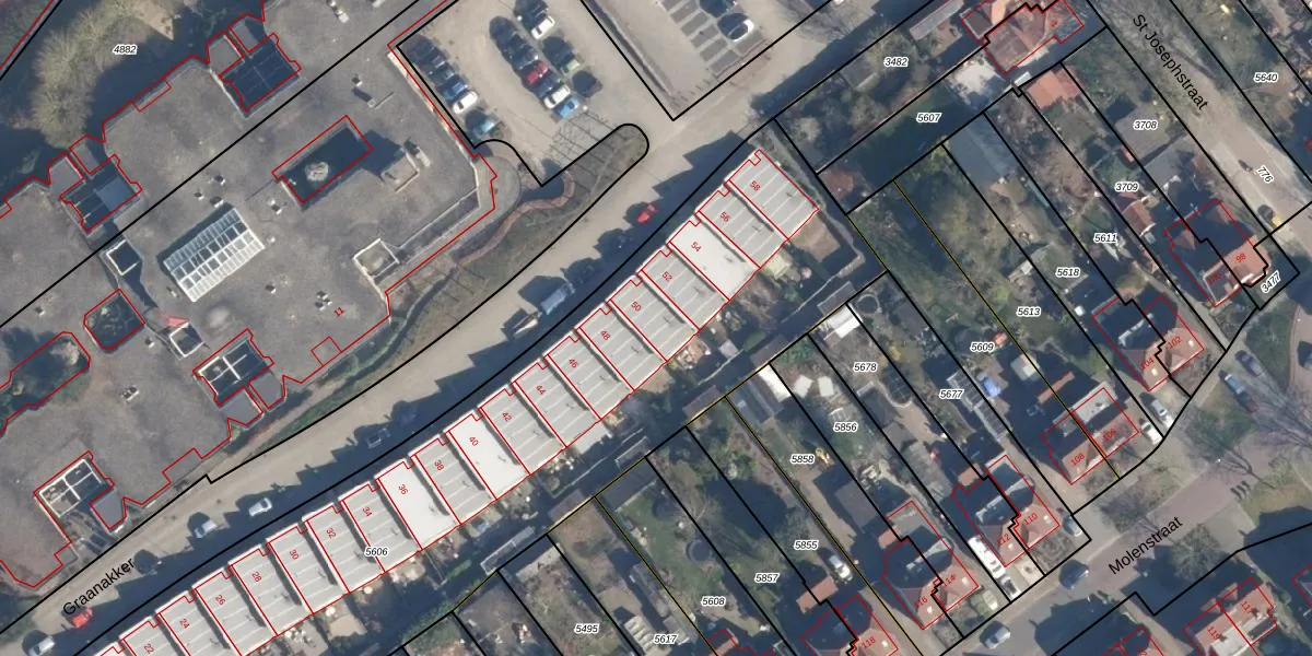 Graanakker 50 is gelegen op kadastraal perceel SOE00K5606. Deze kadastrale aanduiding is uniek en wordt gebruikt door het Kadaster om eigendomsrechten en andere zakelijke rechten vast te leggen. Het perceel maakt onderdeel uit van de kadastrale gemeente Soest.