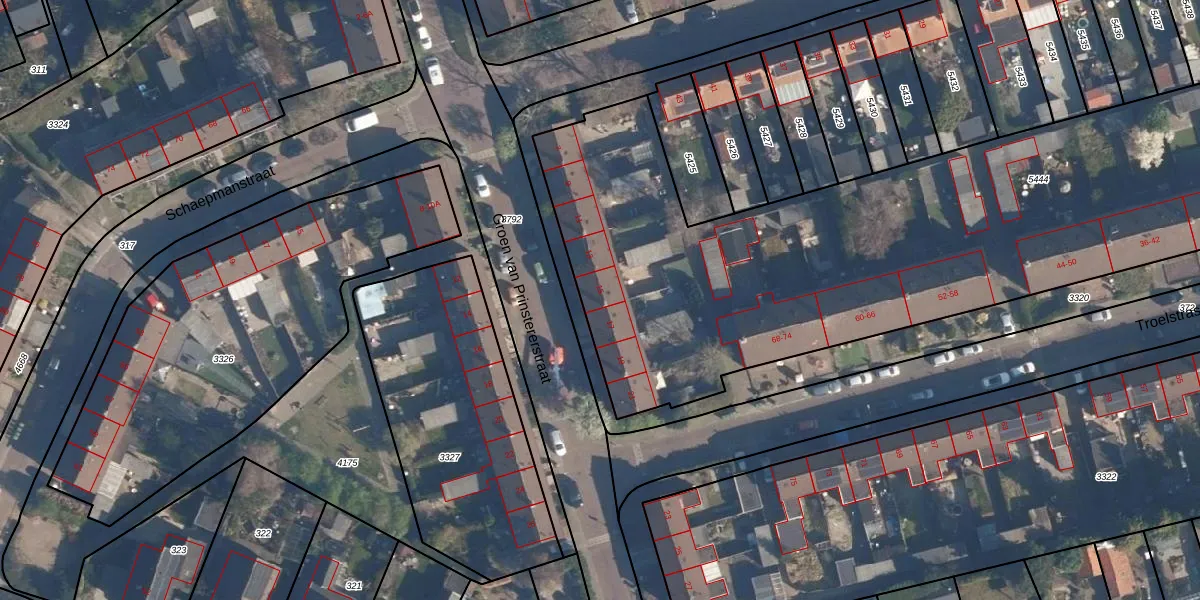 Groen van Prinstererstraat 15 is gelegen op kadastraal perceel SOE00K5444. Deze kadastrale aanduiding is uniek en wordt gebruikt door het Kadaster om eigendomsrechten en andere zakelijke rechten vast te leggen. Het perceel maakt onderdeel uit van de kadastrale gemeente Soest.