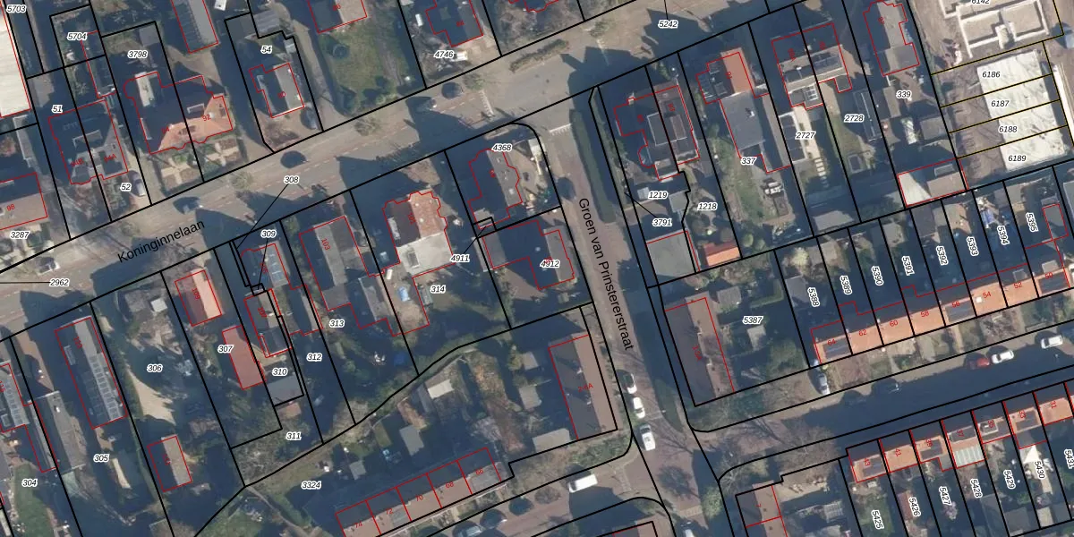 Het perceel waarop Groen van Prinstererstraat 2-B staat heeft een oppervlakte van 310 m². Dit is een groot perceel. De perceeloppervlakte wordt geregistreerd door het Kadaster. Gedetailleerde informatie over de maten van dit perceel kunt u vinden in het rapport Kadastrale kaart met maatvoering van Groen van Prinstererstraat 2-B.