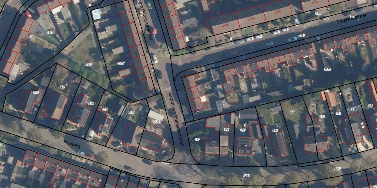 Groen van Prinstererstraat 25 is gelegen op kadastraal perceel SOE00K3322. Deze kadastrale aanduiding is uniek en wordt gebruikt door het Kadaster om eigendomsrechten en andere zakelijke rechten vast te leggen. Het perceel maakt onderdeel uit van de kadastrale gemeente Soest.