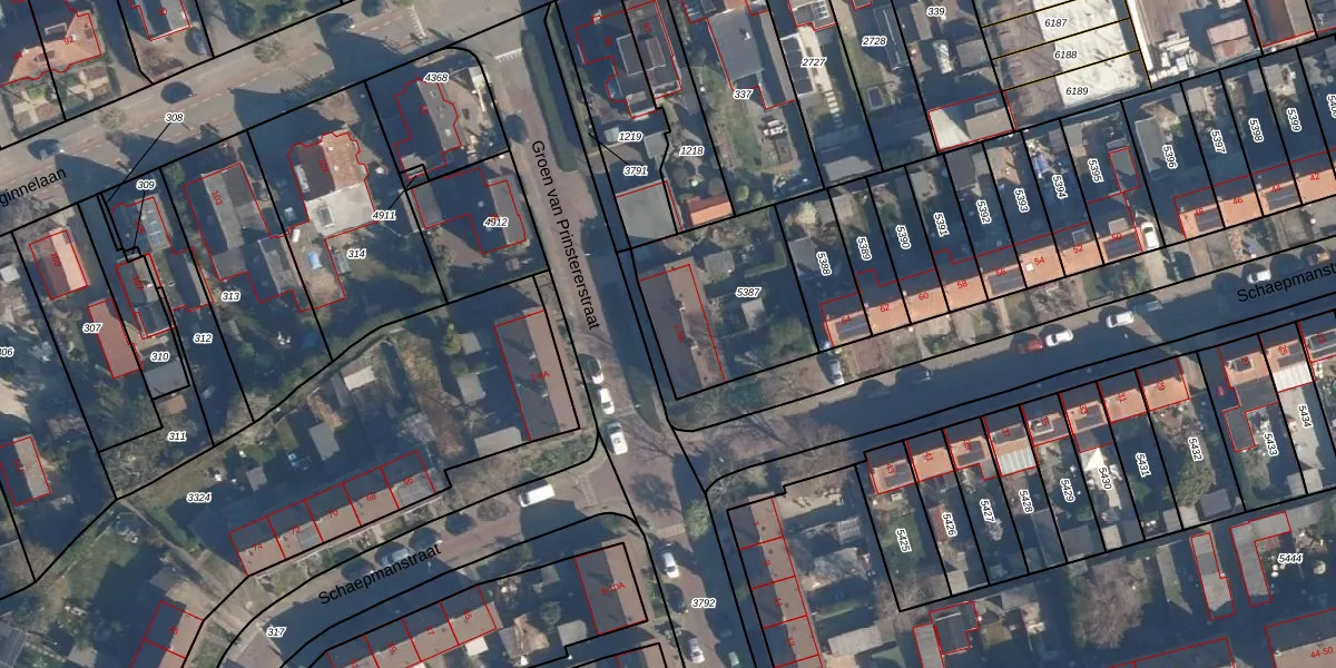 Het perceel waarop Groen van Prinstererstraat 3 staat heeft een oppervlakte van 530 m². Dit is een groot perceel. De perceeloppervlakte wordt geregistreerd door het Kadaster. Gedetailleerde informatie over de maten van dit perceel kunt u vinden in het rapport Kadastrale kaart met maatvoering van Groen van Prinstererstraat 3.