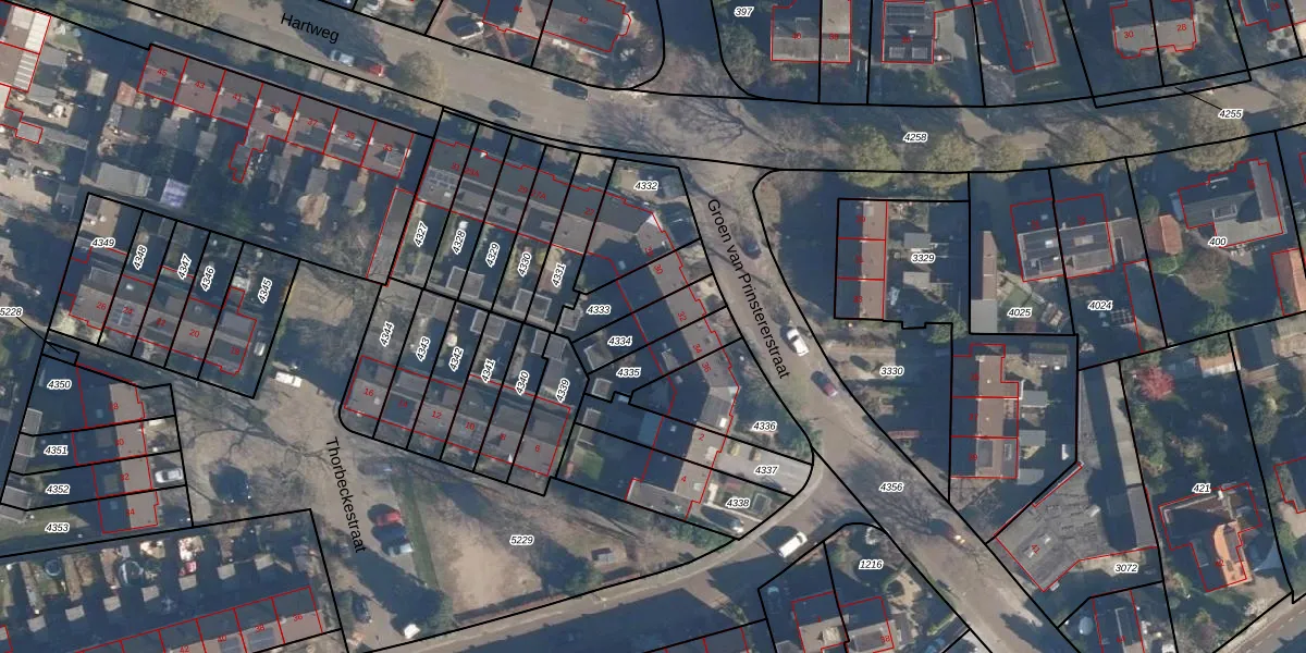 Groen van Prinstererstraat 32 is gelegen op kadastraal perceel SOE00K4334. Deze kadastrale aanduiding is uniek en wordt gebruikt door het Kadaster om eigendomsrechten en andere zakelijke rechten vast te leggen. Het perceel maakt onderdeel uit van de kadastrale gemeente Soest.