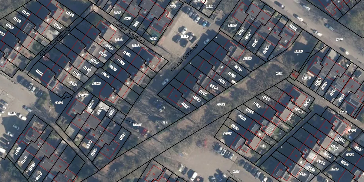 Gustaaf Gelderhof 13 is gelegen op kadastraal perceel SOE00G11218. Deze kadastrale aanduiding is uniek en wordt gebruikt door het Kadaster om eigendomsrechten en andere zakelijke rechten vast te leggen. Het perceel maakt onderdeel uit van de kadastrale gemeente Soest.