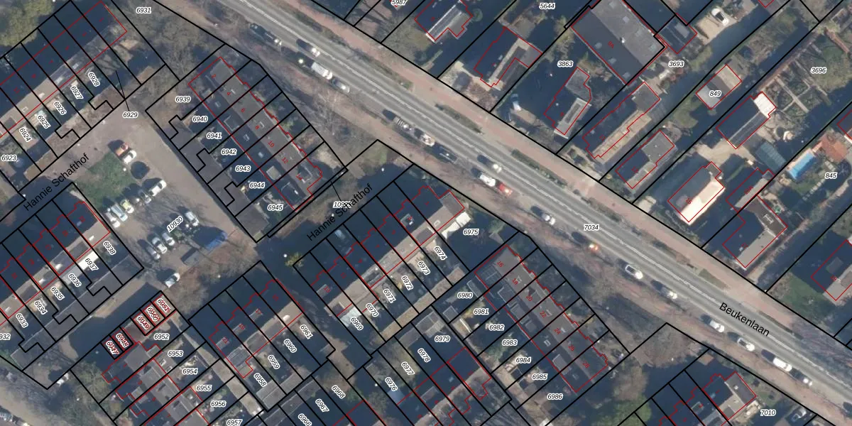 Hannie Schafthof 1 is gelegen op kadastraal perceel SOE00G6975. Deze kadastrale aanduiding is uniek en wordt gebruikt door het Kadaster om eigendomsrechten en andere zakelijke rechten vast te leggen. Het perceel maakt onderdeel uit van de kadastrale gemeente Soest.