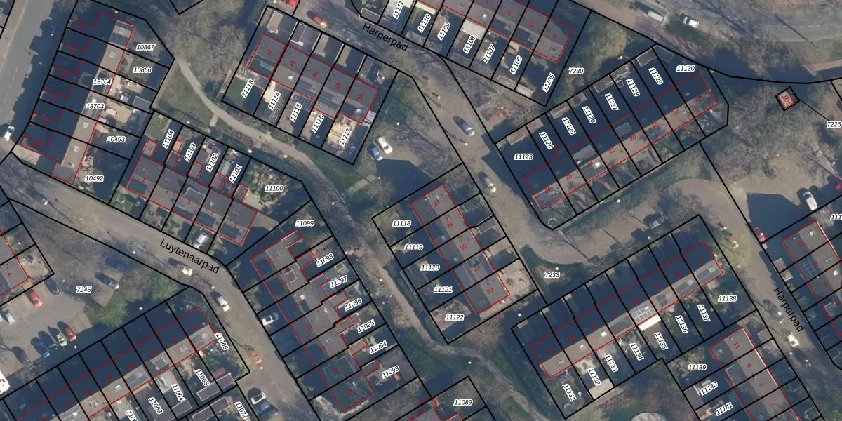Het perceel waarop Harperpad 37 staat heeft een oppervlakte van 207 m². Dit is een middelgroot perceel. De perceeloppervlakte wordt geregistreerd door het Kadaster. Gedetailleerde informatie over de maten van dit perceel kunt u vinden in het rapport Kadastrale kaart met maatvoering van Harperpad 37.