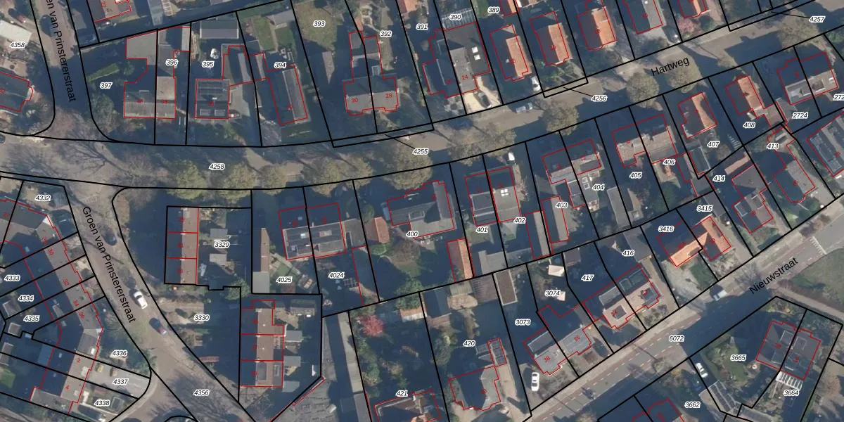 Het perceel waarop Hartweg 19 staat heeft een oppervlakte van 673 m². Dit is een groot perceel. De perceeloppervlakte wordt geregistreerd door het Kadaster. Gedetailleerde informatie over de maten van dit perceel kunt u vinden in het rapport Kadastrale kaart met maatvoering van Hartweg 19.