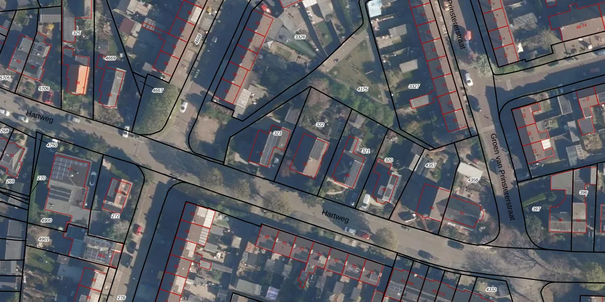 Het perceel waarop Hartweg 50 staat heeft een oppervlakte van 491 m². Dit is een groot perceel. De perceeloppervlakte wordt geregistreerd door het Kadaster. Gedetailleerde informatie over de maten van dit perceel kunt u vinden in het rapport Kadastrale kaart met maatvoering van Hartweg 50.