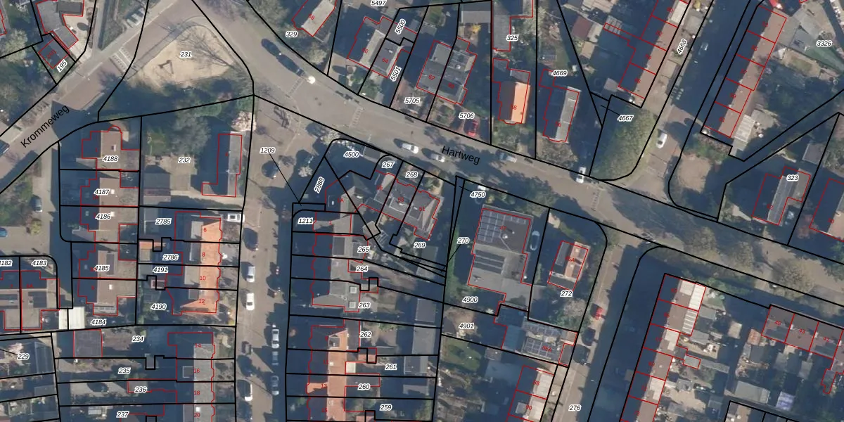 Het perceel waarop Hartweg 51 staat heeft een oppervlakte van 221 m². Dit is een middelgroot perceel. De perceeloppervlakte wordt geregistreerd door het Kadaster. Gedetailleerde informatie over de maten van dit perceel kunt u vinden in het rapport Kadastrale kaart met maatvoering van Hartweg 51.