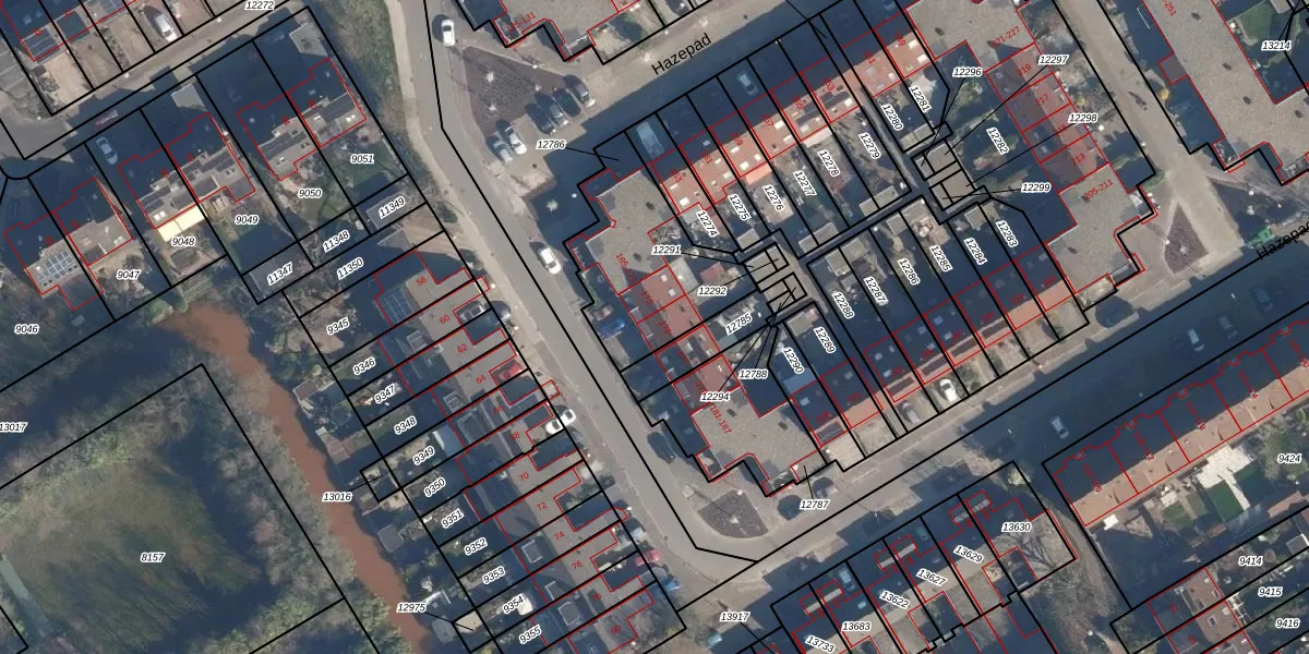 Het perceel waarop Hazepad 175 staat heeft een oppervlakte van 523 m². Dit is een groot perceel. De perceeloppervlakte wordt geregistreerd door het Kadaster. Gedetailleerde informatie over de maten van dit perceel kunt u vinden in het rapport Kadastrale kaart met maatvoering van Hazepad 175.