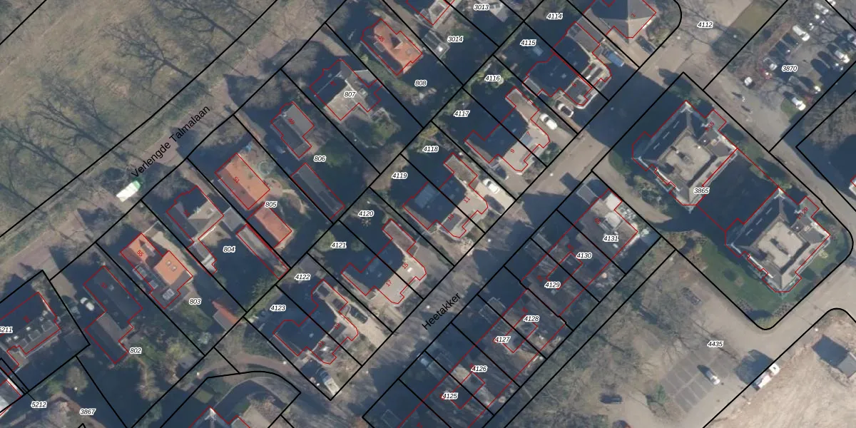 Heetakker 13 is gelegen op kadastraal perceel SOE00K4119. Deze kadastrale aanduiding is uniek en wordt gebruikt door het Kadaster om eigendomsrechten en andere zakelijke rechten vast te leggen. Het perceel maakt onderdeel uit van de kadastrale gemeente Soest.