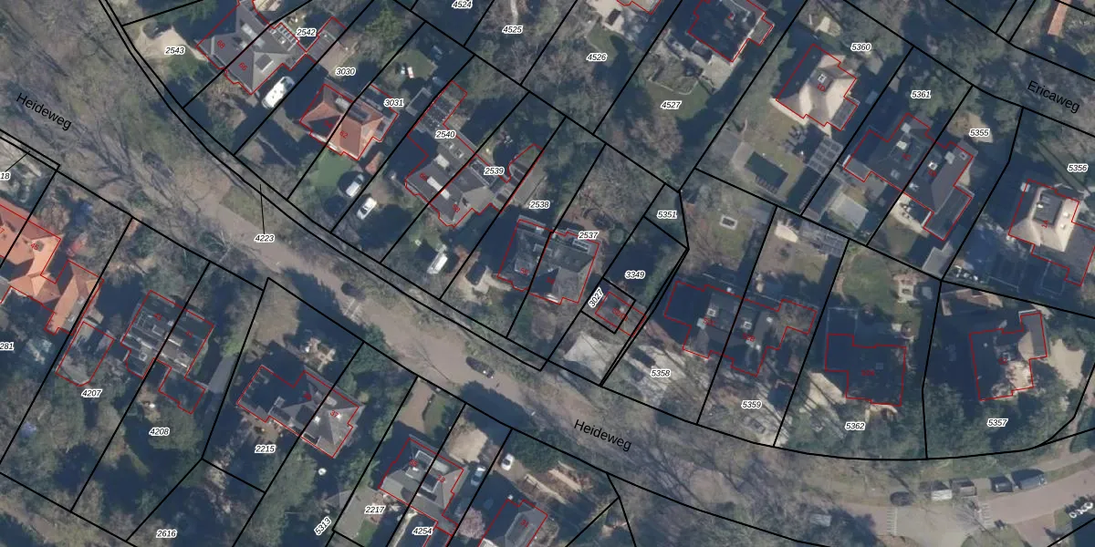 Heideweg 54 is gelegen op kadastraal perceel SOE00D2537. Deze kadastrale aanduiding is uniek en wordt gebruikt door het Kadaster om eigendomsrechten en andere zakelijke rechten vast te leggen. Het perceel maakt onderdeel uit van de kadastrale gemeente Soest.