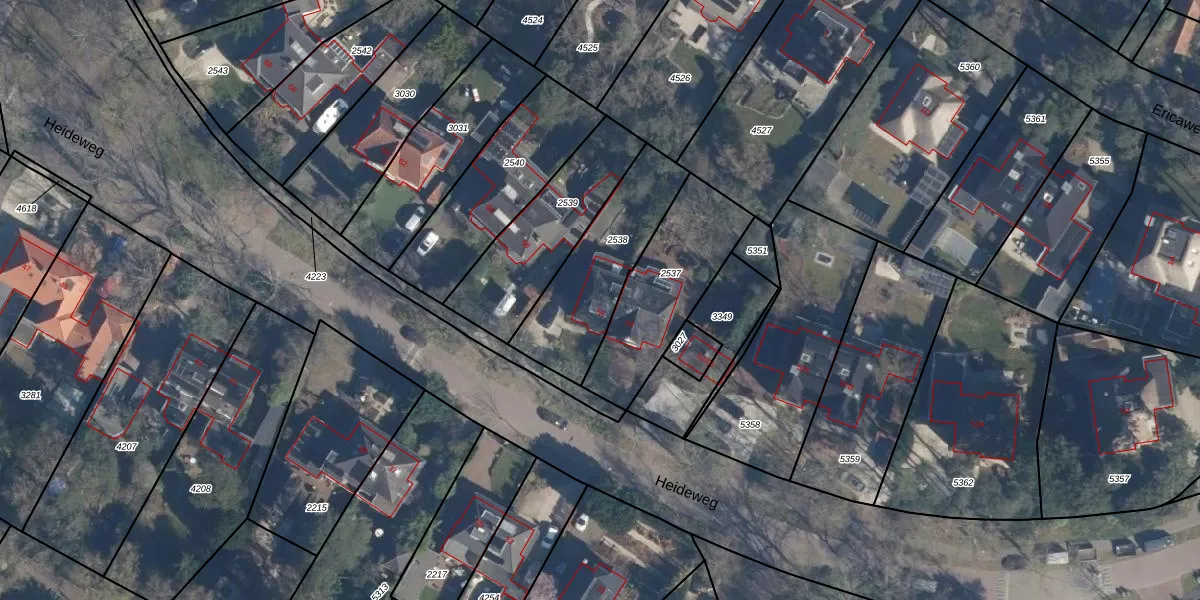 Het perceel waarop Heideweg 56 staat heeft een oppervlakte van 435 m². Dit is een groot perceel. De perceeloppervlakte wordt geregistreerd door het Kadaster. Gedetailleerde informatie over de maten van dit perceel kunt u vinden in het rapport Kadastrale kaart met maatvoering van Heideweg 56.