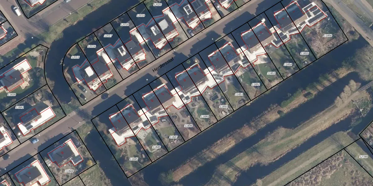Het perceel waarop Herdersstaf 15 staat heeft een oppervlakte van 382 m². Dit is een groot perceel. De perceeloppervlakte wordt geregistreerd door het Kadaster. Gedetailleerde informatie over de maten van dit perceel kunt u vinden in het rapport Kadastrale kaart met maatvoering van Herdersstaf 15.