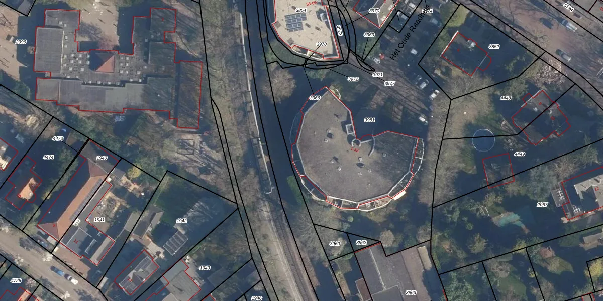 Het perceel waarop Het Oude Raadhuis 49 staat heeft een oppervlakte van 3240 m². Dit is een zeer groot perceel. De perceeloppervlakte wordt geregistreerd door het Kadaster. Gedetailleerde informatie over de maten van dit perceel kunt u vinden in het rapport Kadastrale kaart met maatvoering van Het Oude Raadhuis 49.