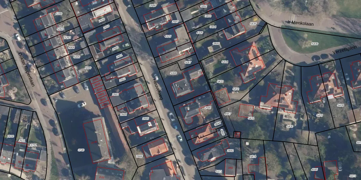 Het perceel waarop Heuvelweg 6 staat heeft een oppervlakte van 432 m². Dit is een groot perceel. De perceeloppervlakte wordt geregistreerd door het Kadaster. Gedetailleerde informatie over de maten van dit perceel kunt u vinden in het rapport Kadastrale kaart met maatvoering van Heuvelweg 6.