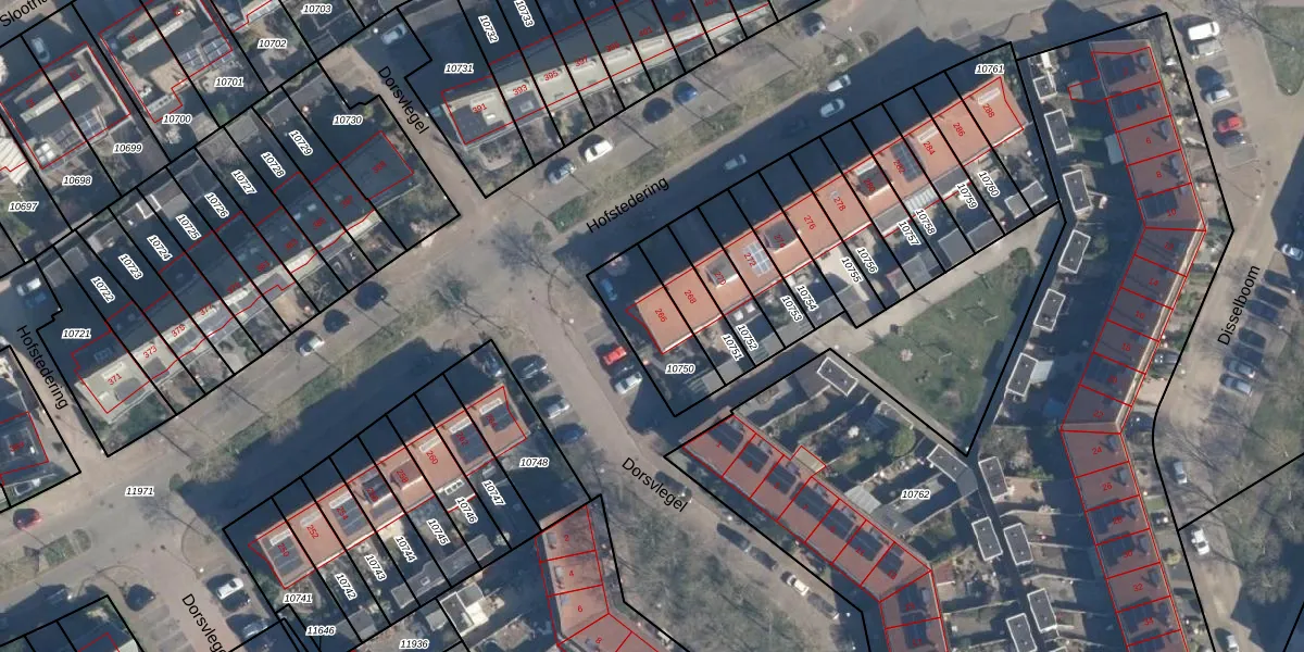 Het perceel waarop Hofstedering 266 staat heeft een oppervlakte van 235 m². Dit is een middelgroot perceel. De perceeloppervlakte wordt geregistreerd door het Kadaster. Gedetailleerde informatie over de maten van dit perceel kunt u vinden in het rapport Kadastrale kaart met maatvoering van Hofstedering 266.
