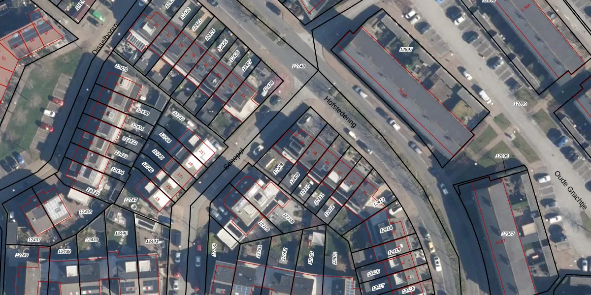 Het perceel waarop Hofstedering 36 staat heeft een oppervlakte van 255 m². Dit is een middelgroot perceel. De perceeloppervlakte wordt geregistreerd door het Kadaster. Gedetailleerde informatie over de maten van dit perceel kunt u vinden in het rapport Kadastrale kaart met maatvoering van Hofstedering 36.