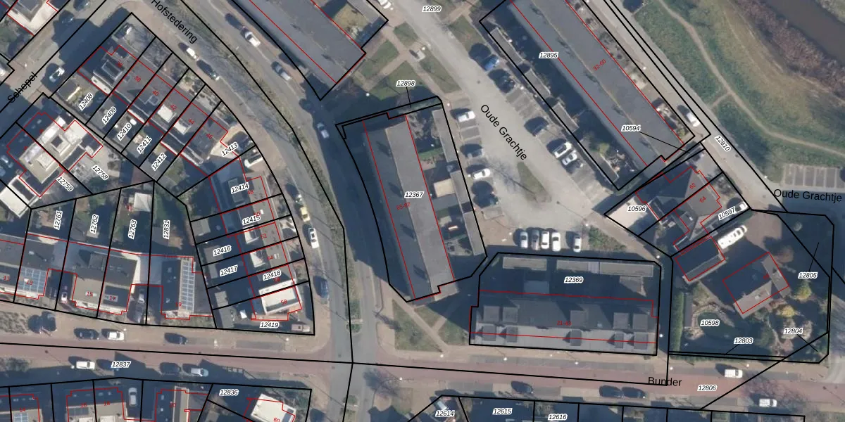 Het perceel waarop Hofstedering 77 staat heeft een oppervlakte van 984 m². Dit is een groot perceel. De perceeloppervlakte wordt geregistreerd door het Kadaster. Gedetailleerde informatie over de maten van dit perceel kunt u vinden in het rapport Kadastrale kaart met maatvoering van Hofstedering 77.