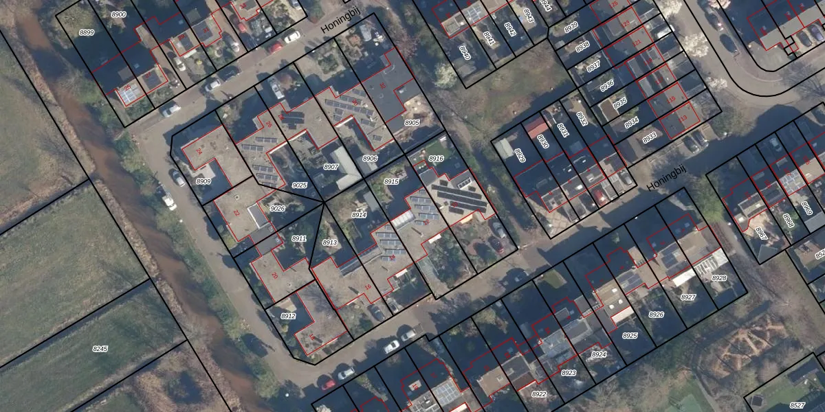 Honingbij 12 is gelegen op kadastraal perceel SOE00G8915. Deze kadastrale aanduiding is uniek en wordt gebruikt door het Kadaster om eigendomsrechten en andere zakelijke rechten vast te leggen. Het perceel maakt onderdeel uit van de kadastrale gemeente Soest.