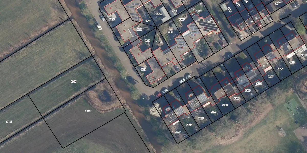 Het perceel waarop Honingbij 18 staat heeft een oppervlakte van 253 m². Dit is een middelgroot perceel. De perceeloppervlakte wordt geregistreerd door het Kadaster. Gedetailleerde informatie over de maten van dit perceel kunt u vinden in het rapport Kadastrale kaart met maatvoering van Honingbij 18.