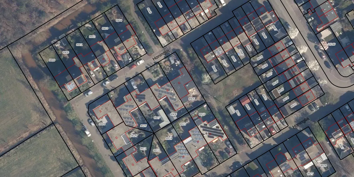 Gebruik de zoekbalk of klik op een perceel voor informatie over de adressen binnen dit perceel.