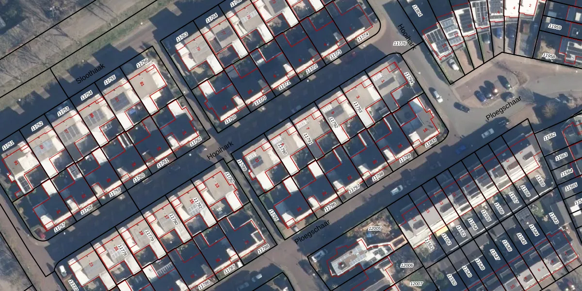 Het perceel waarop Hooihark 9 staat heeft een oppervlakte van 179 m². Dit is een middelgroot perceel. De perceeloppervlakte wordt geregistreerd door het Kadaster. Gedetailleerde informatie over de maten van dit perceel kunt u vinden in het rapport Kadastrale kaart met maatvoering van Hooihark 9.