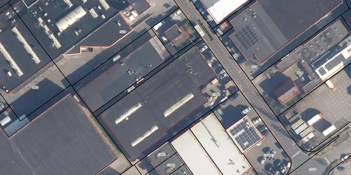 Het perceel waarop Industrieweg 12 staat heeft een oppervlakte van 2626 m². Dit is een zeer groot perceel. De perceeloppervlakte wordt geregistreerd door het Kadaster. Gedetailleerde informatie over de maten van dit perceel kunt u vinden in het rapport Kadastrale kaart met maatvoering van Industrieweg 12.