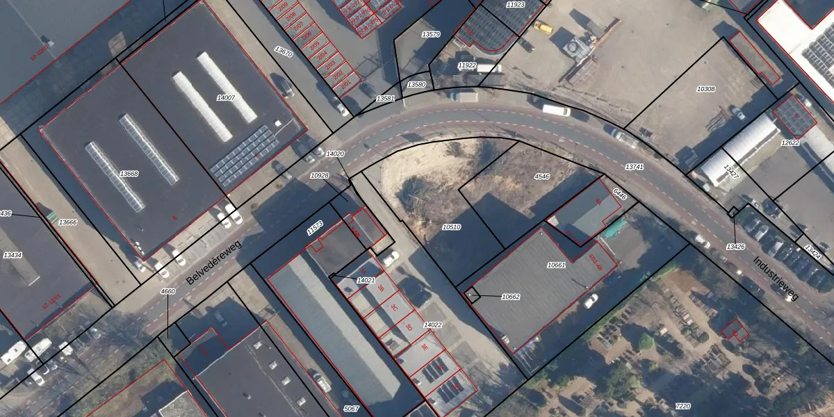 Het perceel waarop Industrieweg 2-M staat heeft een oppervlakte van 685 m². Dit is een groot perceel. De perceeloppervlakte wordt geregistreerd door het Kadaster. Gedetailleerde informatie over de maten van dit perceel kunt u vinden in het rapport Kadastrale kaart met maatvoering van Industrieweg 2-M.