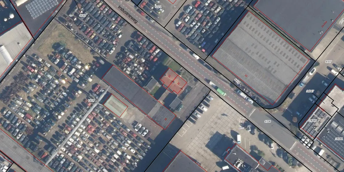 Het perceel waarop Industrieweg 24 staat heeft een oppervlakte van 1,0 ha. Dit is een zeer groot perceel. De perceeloppervlakte wordt geregistreerd door het Kadaster. Gedetailleerde informatie over de maten van dit perceel kunt u vinden in het rapport Kadastrale kaart met maatvoering van Industrieweg 24.