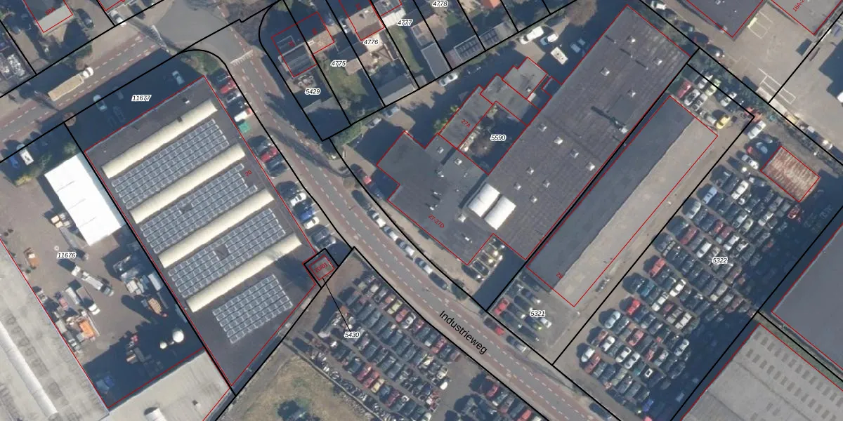 Het perceel waarop Industrieweg 27-02 staat heeft een oppervlakte van 3285 m². Dit is een zeer groot perceel. De perceeloppervlakte wordt geregistreerd door het Kadaster. Gedetailleerde informatie over de maten van dit perceel kunt u vinden in het rapport Kadastrale kaart met maatvoering van Industrieweg 27-02.