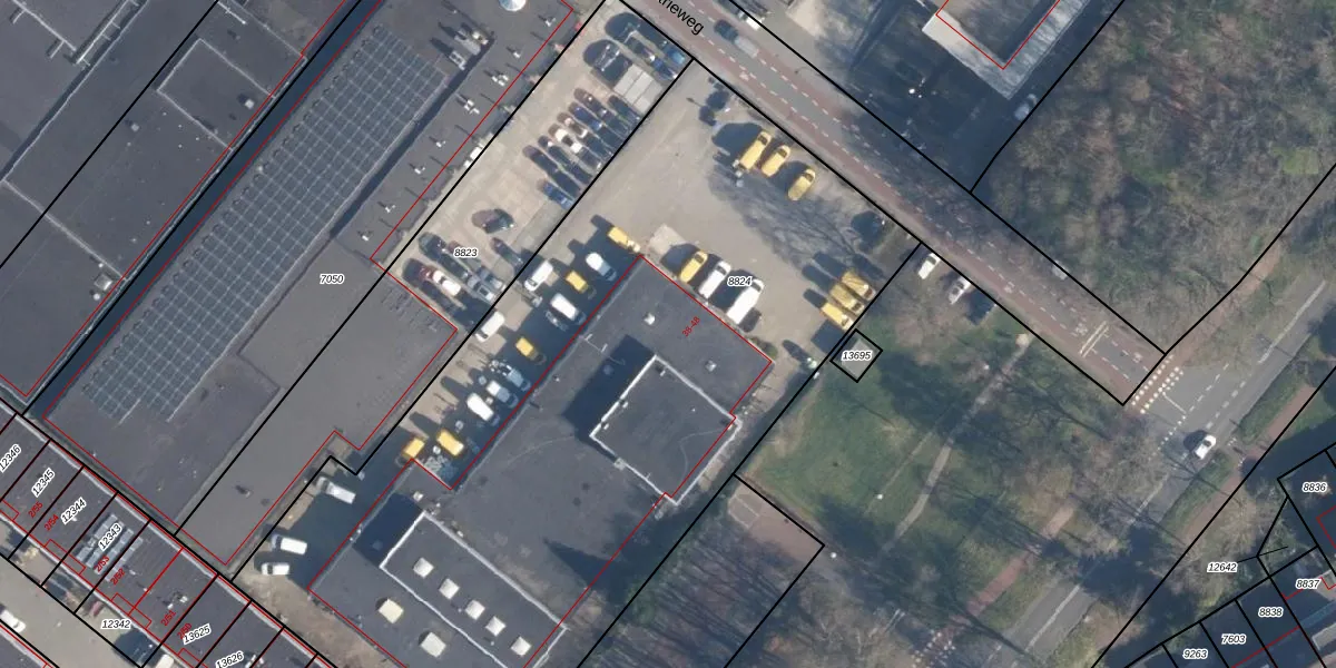 Industrieweg 38 is gelegen op kadastraal perceel SOE00G8824. Deze kadastrale aanduiding is uniek en wordt gebruikt door het Kadaster om eigendomsrechten en andere zakelijke rechten vast te leggen. Het perceel maakt onderdeel uit van de kadastrale gemeente Soest.