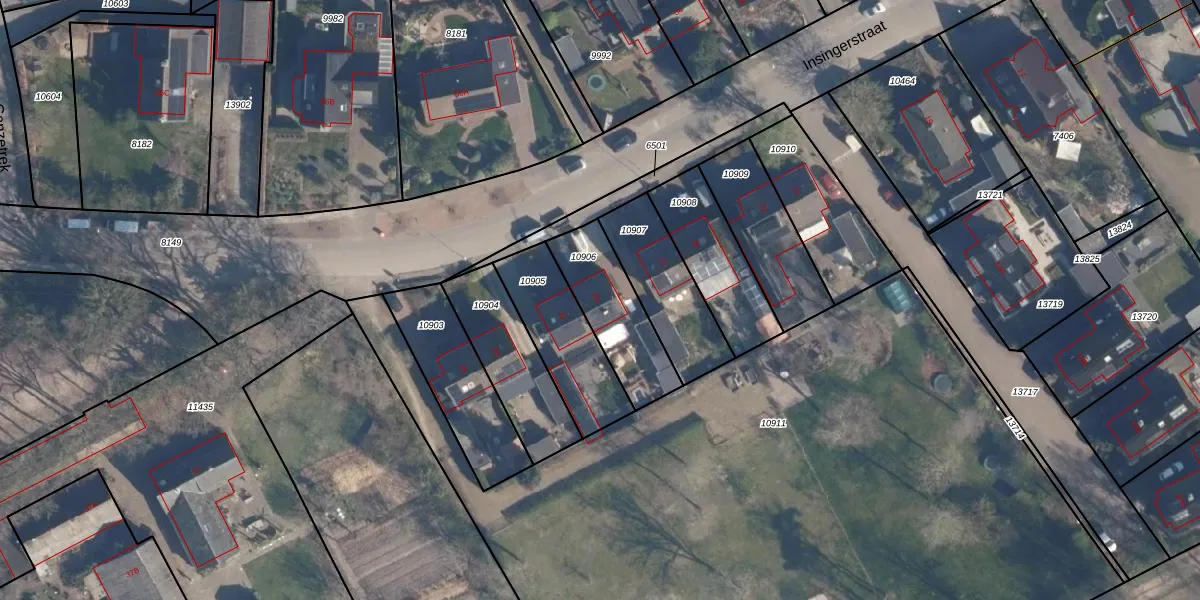 Insingerstraat 29 is gelegen op kadastraal perceel SOE00G10906. Deze kadastrale aanduiding is uniek en wordt gebruikt door het Kadaster om eigendomsrechten en andere zakelijke rechten vast te leggen. Het perceel maakt onderdeel uit van de kadastrale gemeente Soest.