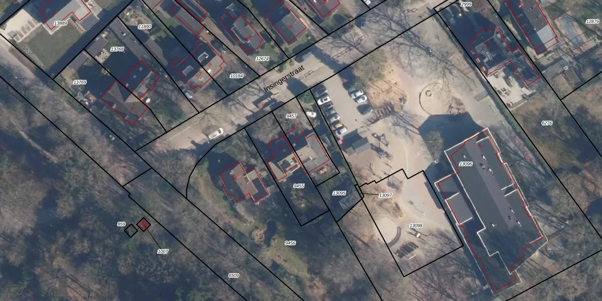 Gebruik de zoekbalk of klik op een perceel voor informatie over de adressen binnen dit perceel.