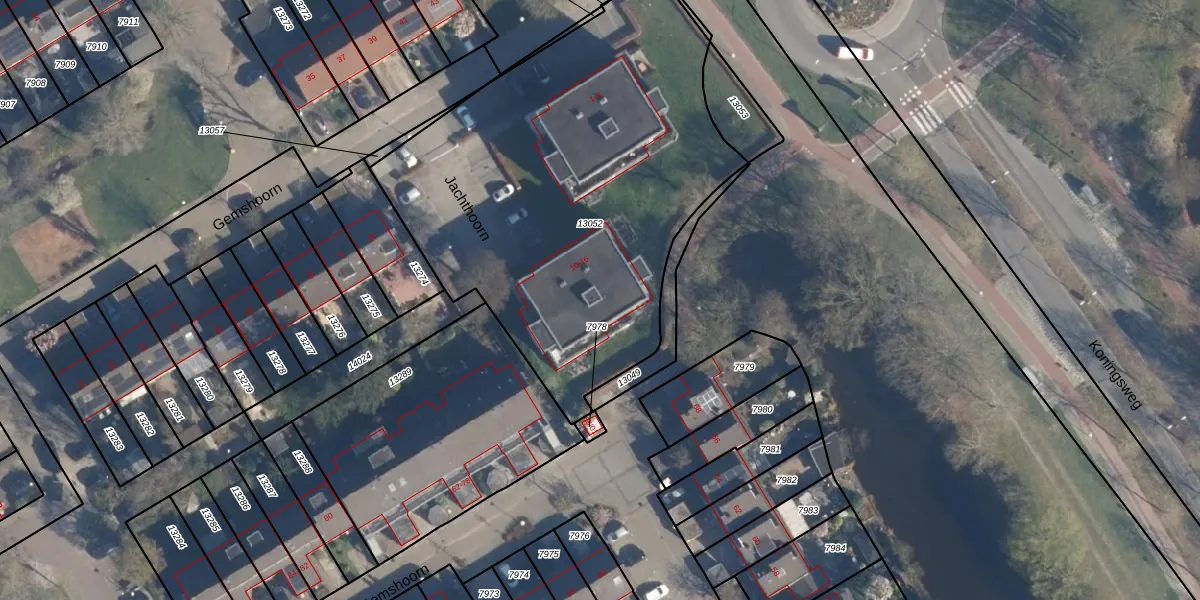 Het perceel waarop Jachthoorn 16 staat heeft een oppervlakte van 2385 m². Dit is een zeer groot perceel. De perceeloppervlakte wordt geregistreerd door het Kadaster. Gedetailleerde informatie over de maten van dit perceel kunt u vinden in het rapport Kadastrale kaart met maatvoering van Jachthoorn 16.