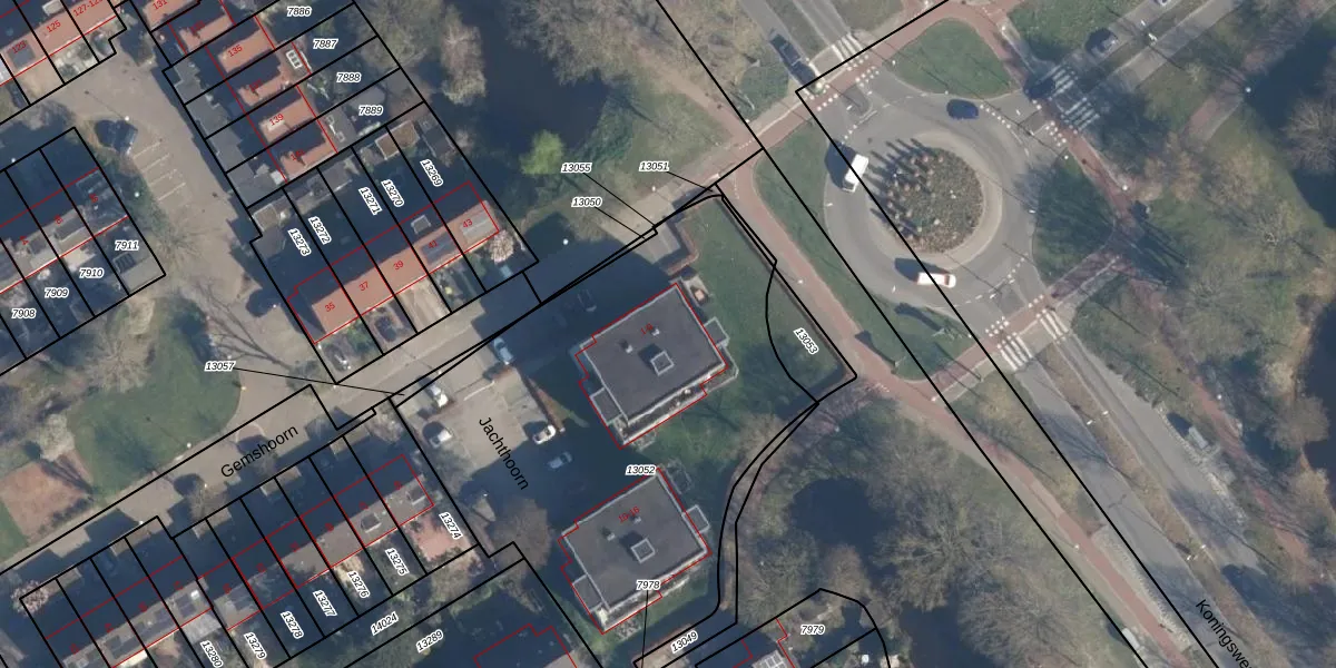 Het perceel waarop Jachthoorn 4 staat heeft een oppervlakte van 2385 m². Dit is een zeer groot perceel. De perceeloppervlakte wordt geregistreerd door het Kadaster. Gedetailleerde informatie over de maten van dit perceel kunt u vinden in het rapport Kadastrale kaart met maatvoering van Jachthoorn 4.