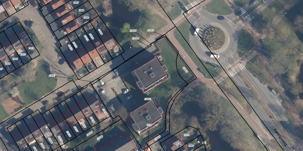 Het perceel waarop Jachthoorn 7 staat heeft een oppervlakte van 2385 m². Dit is een zeer groot perceel. De perceeloppervlakte wordt geregistreerd door het Kadaster. Gedetailleerde informatie over de maten van dit perceel kunt u vinden in het rapport Kadastrale kaart met maatvoering van Jachthoorn 7.