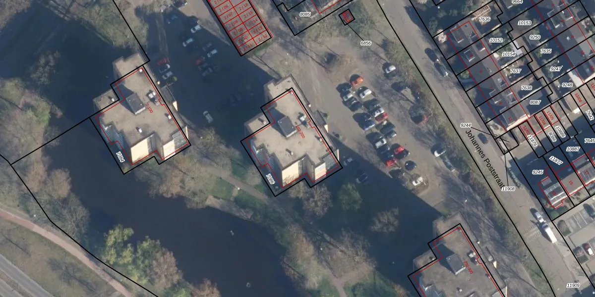Het perceel waarop Johannes Poststraat 174 staat heeft een oppervlakte van 655 m². Dit is een groot perceel. De perceeloppervlakte wordt geregistreerd door het Kadaster. Gedetailleerde informatie over de maten van dit perceel kunt u vinden in het rapport Kadastrale kaart met maatvoering van Johannes Poststraat 174.