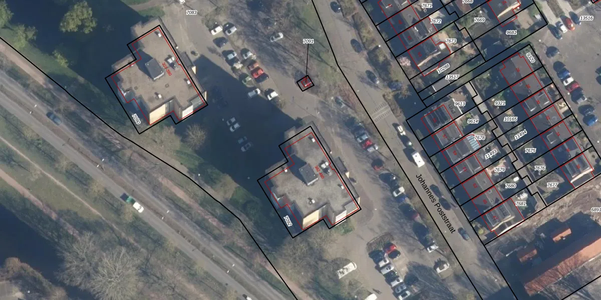 Het perceel waarop Johannes Poststraat 412 staat heeft een oppervlakte van 655 m². Dit is een groot perceel. De perceeloppervlakte wordt geregistreerd door het Kadaster. Gedetailleerde informatie over de maten van dit perceel kunt u vinden in het rapport Kadastrale kaart met maatvoering van Johannes Poststraat 412.