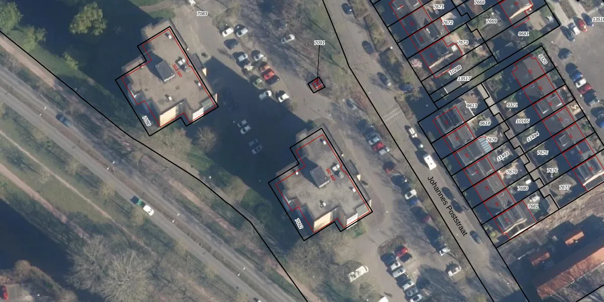 Het perceel waarop Johannes Poststraat 438 staat heeft een oppervlakte van 655 m². Dit is een groot perceel. De perceeloppervlakte wordt geregistreerd door het Kadaster. Gedetailleerde informatie over de maten van dit perceel kunt u vinden in het rapport Kadastrale kaart met maatvoering van Johannes Poststraat 438.