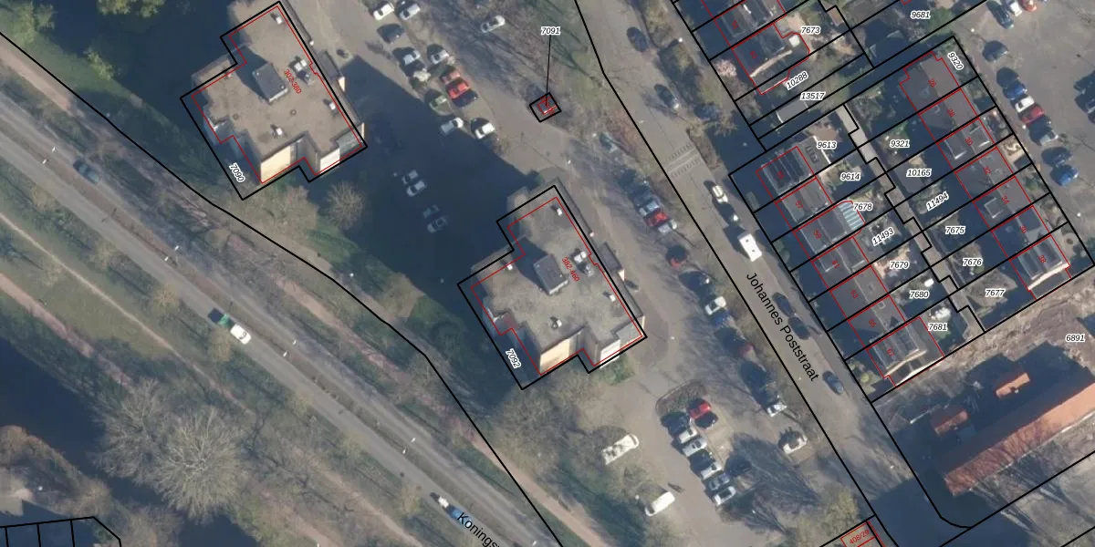 Het perceel waarop Johannes Poststraat 448 staat heeft een oppervlakte van 655 m². Dit is een groot perceel. De perceeloppervlakte wordt geregistreerd door het Kadaster. Gedetailleerde informatie over de maten van dit perceel kunt u vinden in het rapport Kadastrale kaart met maatvoering van Johannes Poststraat 448.
