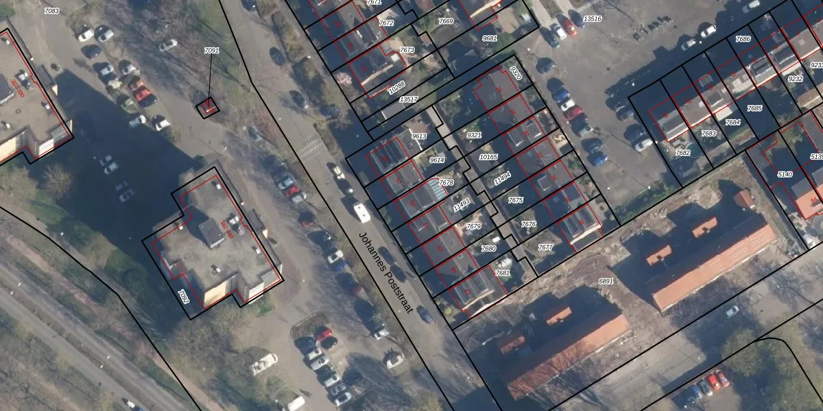 Johannes Poststraat 59 is gelegen op kadastraal perceel SOE00G7678. Deze kadastrale aanduiding is uniek en wordt gebruikt door het Kadaster om eigendomsrechten en andere zakelijke rechten vast te leggen. Het perceel maakt onderdeel uit van de kadastrale gemeente Soest.