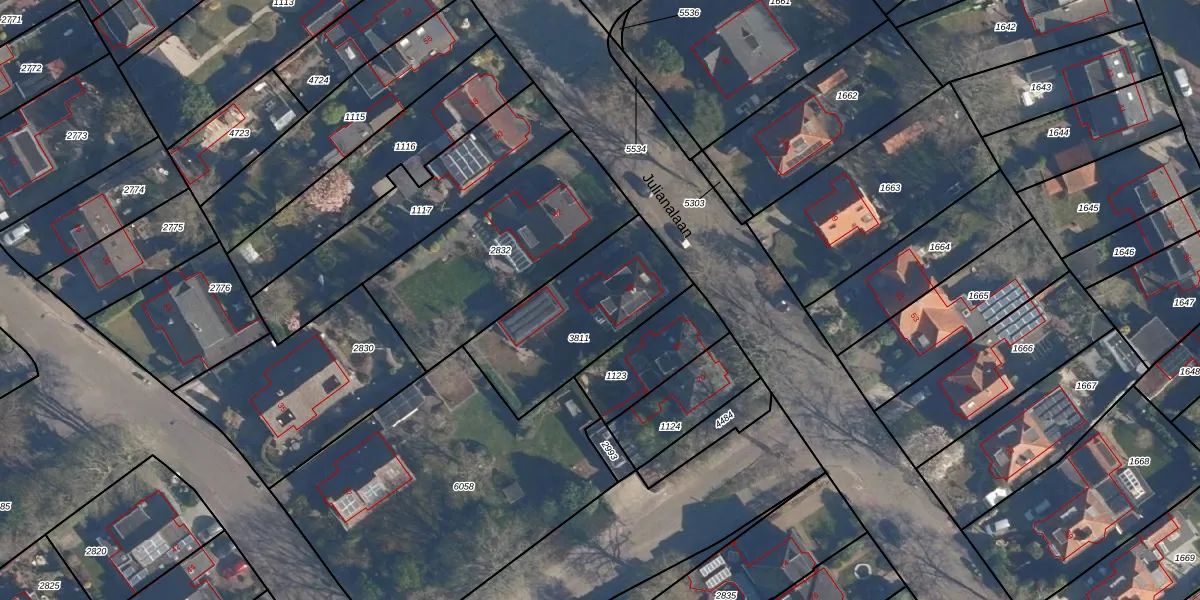 Het perceel waarop Julianalaan 66 staat heeft een oppervlakte van 585 m². Dit is een groot perceel. De perceeloppervlakte wordt geregistreerd door het Kadaster. Gedetailleerde informatie over de maten van dit perceel kunt u vinden in het rapport Kadastrale kaart met maatvoering van Julianalaan 66.