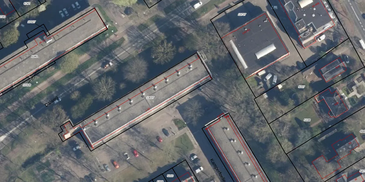 Het perceel waarop Kamperfoeliestraat 1-17 staat heeft een oppervlakte van 1370 m². Dit is een zeer groot perceel. De perceeloppervlakte wordt geregistreerd door het Kadaster. Gedetailleerde informatie over de maten van dit perceel kunt u vinden in het rapport Kadastrale kaart met maatvoering van Kamperfoeliestraat 1-17.