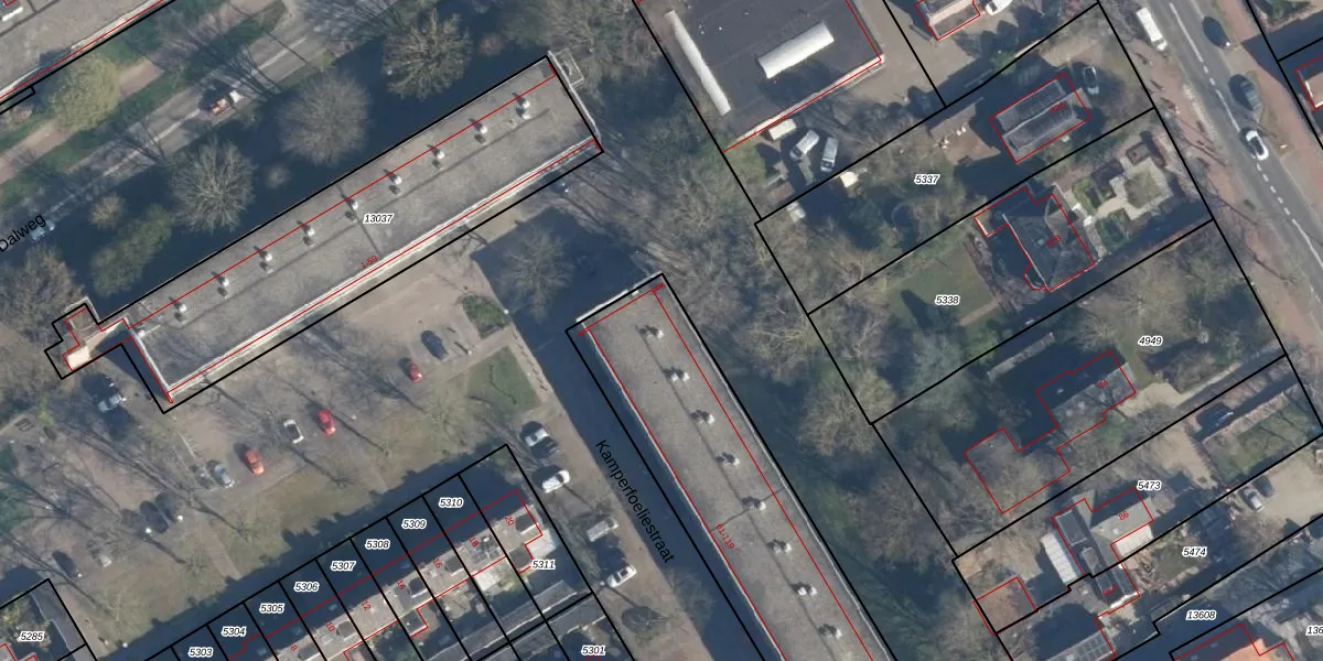 Het perceel waarop Kamperfoeliestraat 101 staat heeft een oppervlakte van 2725 m². Dit is een zeer groot perceel. De perceeloppervlakte wordt geregistreerd door het Kadaster. Gedetailleerde informatie over de maten van dit perceel kunt u vinden in het rapport Kadastrale kaart met maatvoering van Kamperfoeliestraat 101.