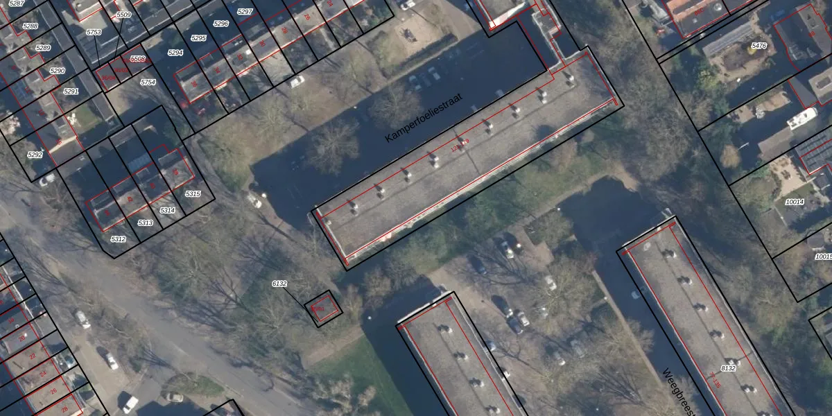 Het perceel waarop Kamperfoeliestraat 175 staat heeft een oppervlakte van 2725 m². Dit is een zeer groot perceel. De perceeloppervlakte wordt geregistreerd door het Kadaster. Gedetailleerde informatie over de maten van dit perceel kunt u vinden in het rapport Kadastrale kaart met maatvoering van Kamperfoeliestraat 175.
