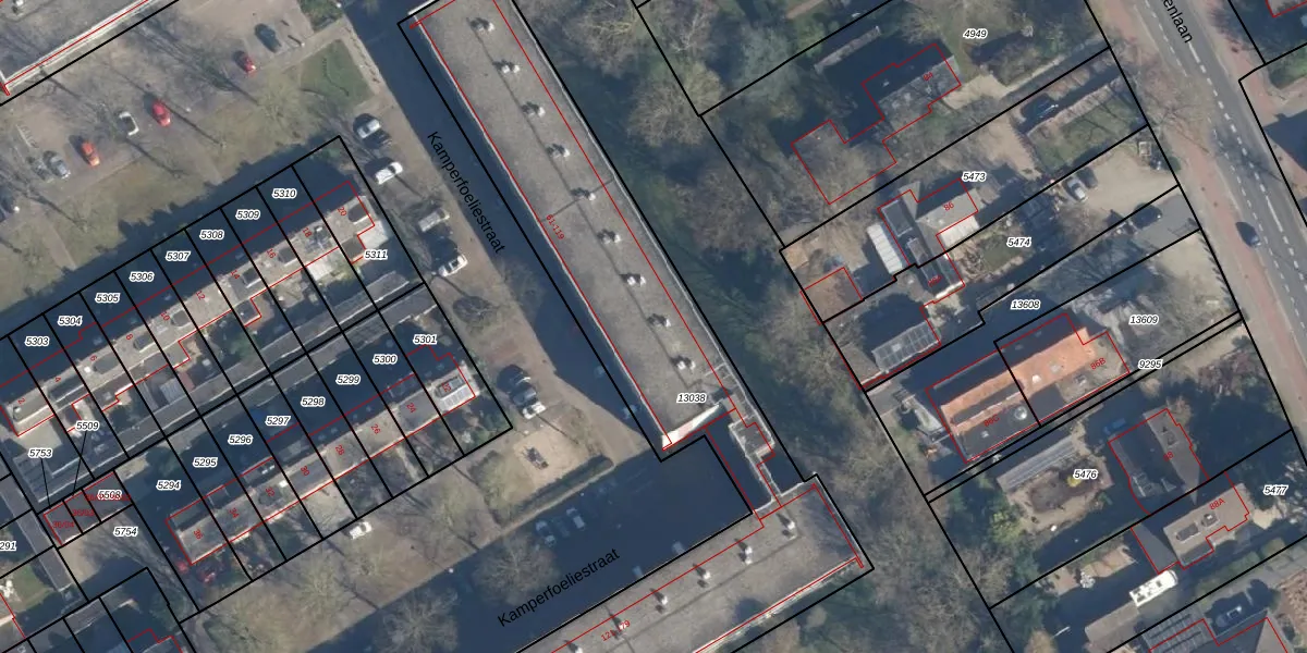 Kamperfoeliestraat 97 is gelegen op kadastraal perceel SOE00G13038. Deze kadastrale aanduiding is uniek en wordt gebruikt door het Kadaster om eigendomsrechten en andere zakelijke rechten vast te leggen. Het perceel maakt onderdeel uit van de kadastrale gemeente Soest.