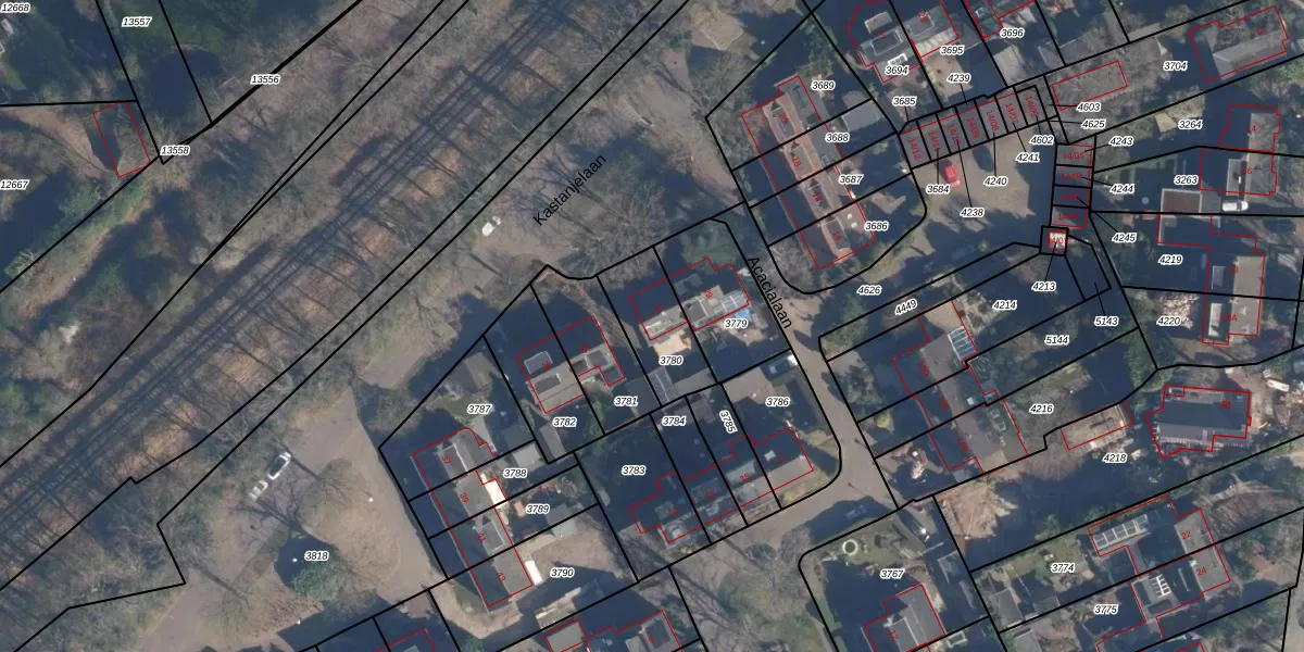 Kastanjelaan 31 is gelegen op kadastraal perceel SOE00D3780. Deze kadastrale aanduiding is uniek en wordt gebruikt door het Kadaster om eigendomsrechten en andere zakelijke rechten vast te leggen. Het perceel maakt onderdeel uit van de kadastrale gemeente Soest.